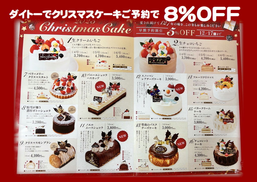 また、ダイトーでは三星さんのクリスマスケーキのご予約を承っております!!
